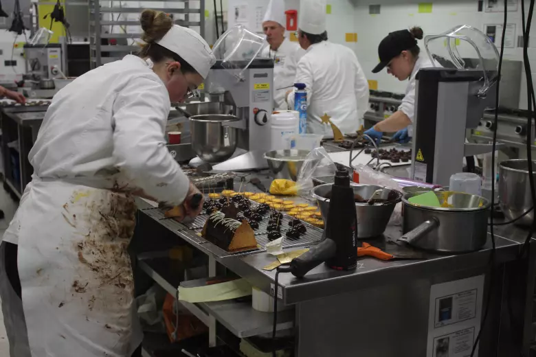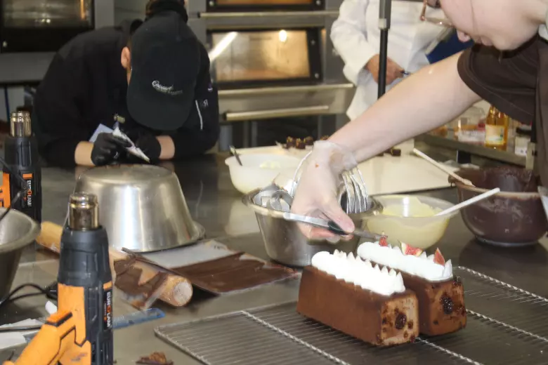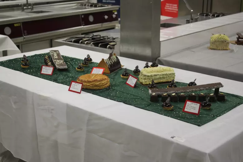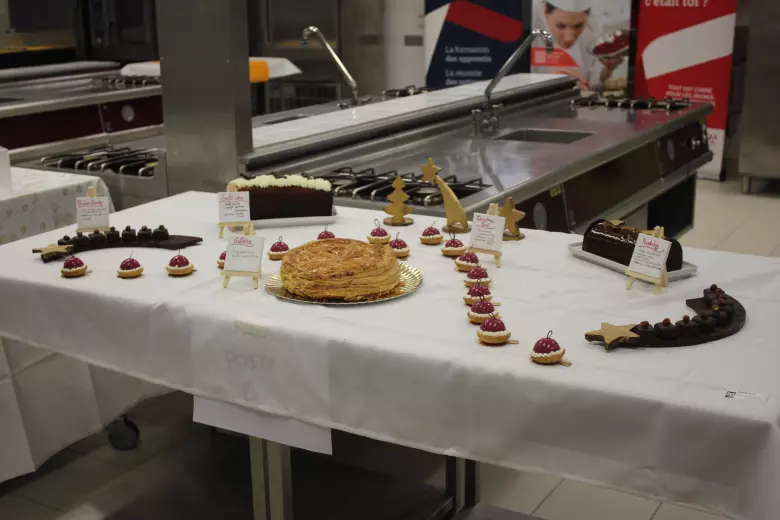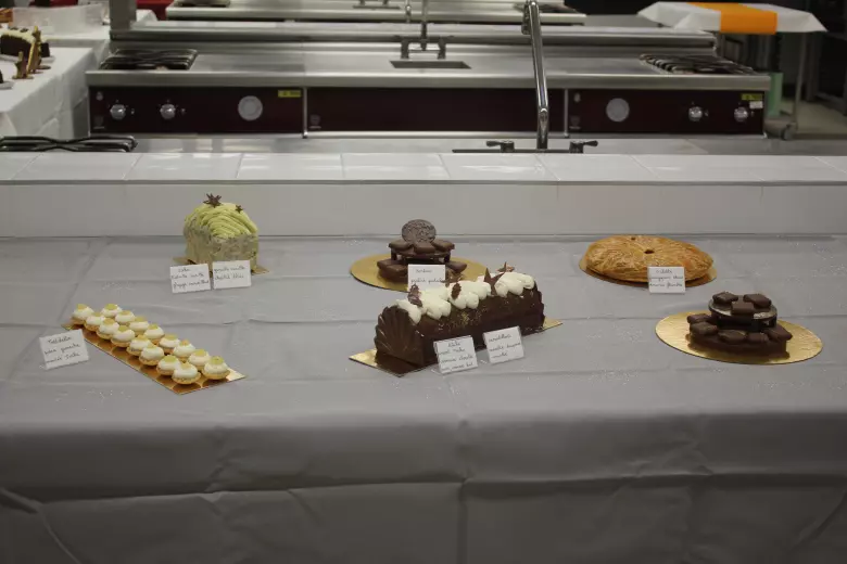 En effet, la fabrication imposée pour ce concours régional du MAF Pâtissier Hauts de France se décomposait comme suit : Deux Galettes des Rois, deux Bûches de Noël, deux gâteaux de voyage, 24 tartelettes et 24 bonbons au chocolat en 7h00 de travail. Dans cette optique, de 8h00 à 15H00 dans les laboratoires du CFA de Saint-Saulve, un jury composé de quatre pâtissiers reconnus a surveillé la fabrication, la cuisson, la couverture, le moulage, le montage, les choix de produits et bien sûr l’hygiène sur l’ensemble du process.
